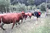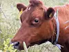 Kyra til Oslo kommunes besøksgård, Nordre Lindeberg gård er på sommerferie. Ferien har de på et overdådig frodig beite langs veien mellom Ellingsrud og Mariholtet.