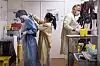 På Rikshospitalet er 19 år gamle Catarina Anabelle Redish (i midten) ansvarlig for å hjelpe til med av- og påkledning sammen med sykepleier Jan Petter Landbø.Foto: Jil Yngland / NTB