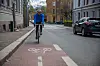 Langs ruta vi sykler er det lite som minner om en sykkelvei utover at det er satt opp skilting. Det står biler parkert i gatene og deler av ruta går i gater som er enveiskjørt i motsatt retning for bilene.