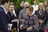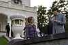 Dronning Sonja sammen med Sarah Chatto og Samuel Chatto under åpningen av keramikkutstillingen med verk av avgangselever fra Kunsthøgskolen i Oslo (KHiO) i anledning sesongåpningen av Oscarshall.Foto: Cornelius Poppe / NTB