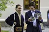 Sarah Chatto (Margaret av Storbritannias datter) og sønnen Samuel Chatto under åpningen av keramikkutstillingen med verk av avgangselever fra Kunsthøgskolen i Oslo (KHiO) i anledning sesongåpningen av Oscarshall.Foto: Cornelius Poppe / NTB