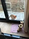 Den aggressive Bygdøy-reven er nå død. Her har den hoppet over hagegjerdet og kikker inn i huset til familien som mistet sin lille halvannet år gamle pomeranian-hund.