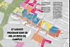 De nye planene for som strekker seg fra dagens majorstuhus og til Frøen stasjon. De hvite husrekkene ligger på toppen av dagens t-banelinje. Nederst på bildet ligger Chateau Neuf og Musikkhøgskolen.Illustrasjon: Asplan Viak