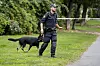Politiets hundepatrulje i søk etter den antatte gjerningsmannen.Foto: Jil Yngland / NTB