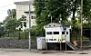 Den ubetjente politiposten foran området der den iranske ambassaden befinner seg ble også tagget på. Her fra en tidligere anledning.