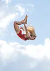 Dødsing handler om å komme opp med forskjellige positurer og triks før man treffer vannet. Her fra mesterskapet i 2022.Foto: Lars-Erik Blenne Lien