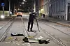 Politiet på stedet søndag kveld der en ung mann ble påkjørt av en bil ved Solli plass.