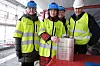 Første grunnstein ble lagt på det kommende Majorstuhjemmet. Fra venstre: Adm. dir. i Oslobygg Eli Grimsby, byråd Rina Mariann Hansen, byråd Marthe Scharning Lund og direktør i Sykehjemsetaten Helge Jagmann.Foto: Petter Terning