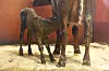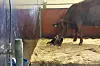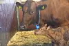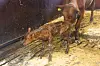 Så etter omtrent en time begynte ting å skje. Først kom klovene på forbena ut, så hodet. Og plutselig var Fredrikke født. Mamma Bambi slikket henne ren, og kalven prøvde å reise seg. Men det var mye bein og glatt gulv. Til slutt var likevel Fredrikke på beina og amme melk fra mamma Bambi.