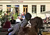 Det var en gang, i en nokså fjern virkelighet, at Litteraturhuset var et samlingssted for store og små. Kafé Oslo har ikke holdt åpent utendørs siden sommeren og høsten 2019.Foto: Paul Torvik Nilsen