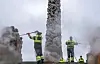 Vasking av skulpturene etter at aksjonister fra Stopp oljeletinga griset til Monolitten i Vigelandsanlegget.