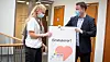 Blomsterbukett til Synne fra leder av Frogner bydelsutvalg, Jens J. Lie (H), da hun fikk dose nummer 50.000 mot korona i bydel Frogner.Foto: R. Heggem