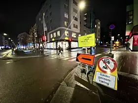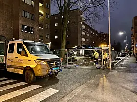Industrigata var da imidlertid fortsatt stengt på stedet, med et større oppgravd hull i bakken og anleggsarbeidere i aksjon på stedet.