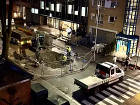 Senere samme kveld hadde anleggsarbeiderne forlatt området, mens en gravemaskin sto igjen ved hullet i bakken med inngjerding rundt gjennom natten.
