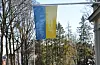 Det flagges for Ukraina utenfor Det Norske Videnskaps-Akademi, som er nærmeste nabo til Russlands ambassade i Drammensveien på Skillebekk.Foto: Arnsten Linstad
