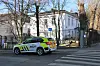 Politibil på vakt ved personalinngangen helt tilv. i bildet) til den russiske ambassaden på Skillebekk. Dette er krysset som kan bli døpt Ukrainas plass.Foto: Arnsten Linstad