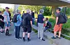 Sidsel Andersen i rød T-skjorte og bymiljøetatens Terje Laskemoen ønsker velkommen til bekkevandring langs Hovinbekken mellom Økern og Ensjø.Foto: Anders Høilund