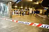 Politisperringer ved Jernbanetorget etter at en mann ble knivstukket lørdag kveld. Mannen er alvorlig, men ikke livstruende skadd, opplyser politiet.Foto: Lise Åserud / NTB