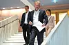 Fra venstre; helsebyråd Robert Steen (Ap), byrådsleder Raymond Johansen (Ap) og miljøbyråd Lan Marie Berg (MDG) på vei for å informere om koronatiltakt.Foto: Heiko Junge / NTB