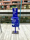 Håven med søppelkasse satt opp på brygga ved Munch. Instruksjoner kan leses på søppelkassa.Foto: Bymiljøetaten / Oslo kommune