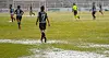 Regn, lyn og torden førte til mye vann på banen. Kampen ble også stoppet i 30 minutter. Men da spillet var i gang igjen var det svært vanskelige forhold.