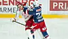 Sin unge alder til tross er ikke Stian Solberg redd for å sette seg i respekt. Her er det Stjernens Alex Dostie som får kjørt seg.Foto: Terje Pedersen / NTB
