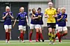 Vålerenga jubel med Rikke Marie Madsen, Stine Ballisager Pedersen, målscorer Celin Bizet, Dejana Stefanovic, Janni Thomsen og Rikke Nygardt under Toppseriekampen mellom LSK Kvinner og Vålerenga i LSK-hallen. Foto: Jil Yngland / NTBJil Yngland