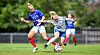 Dejana Stefanovic (delvis skjult) ble den store helten med to mål da Vålerenga-damene slet seg til en 2-1-seier borte mot Kolbotn i ettermiddag.Foto: Annika Byrde / NTB