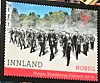 Frimerket til hundreårsjubileet til Norges Musikkorps Forbund viste Kampen janitsjar på Slottsbakken.Foto: Christer Engelstad
