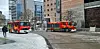 Brannbiler på plass like ved en nedgang til Jernbanetorget T-banestasjon. Røykutvikling førte til at stasjonen ble evakuert og stengt søndag ettermiddag.Foto: Christian Boger