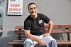 Ghassan Sajer smiler stort sittende på benken han fikset til de eldre i nabolaget på Kampen.Foto: André Kjernsli