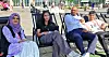 Zara Kokub Imran, Nawail Butt, kulturbyråd Omar Samy Gamal og Taha Al-Maliky ønsker velkommen til sommeraktiviteter utenfor Deichman Bjørvika.Foto: Christian Boger