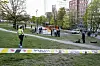 Politiet på Elgsletta etter en knivstikking i mai i år. Parken er et kjent tilholdssted for mange rusavhengige i Oslo.