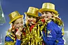 Rikke Nygaard (f.v), Celin Bizet Ildhusøy og Mia Huse feiret Vålerenga damers første serietriumf etter 4-0 over Arna Bjørnar i siste serierunde.Foto: Fredrik Hagen / NTB