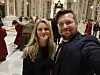 St. Hallvard-guttenes daglige leder Eline Dalhoff og dirigent Hans Dur Molvik side om side under pavebesøket.Foto: Privat