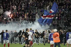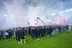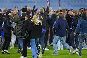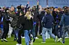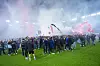 Lykkerusen over opprykk fikk Enga-fansen til å storme banen. Her kan du se bildene fra det historiske øyeblikket.