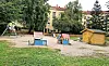 Rett ved siden av barnehagen er den oppgraderte Middelalderparken i ferd med å bli ferdig.