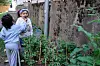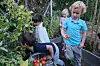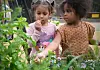 Barn i Strekkoden barnehage utforsker urtehagen.Foto: Ric Francis