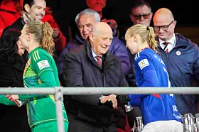 Kongen, kulturministeren og fotballpresidenten fulgte alle kampen fra sidelinja.