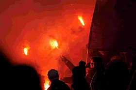 Til tross for avslag på pyrobruk fra brannetaten i forkant av cupfinaleoppgjøret, lyste bluss opp fra tribunehold i vintermørket for vinnerne.