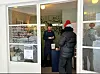 Slik så inngangsdøren på den lokale kaffebaren ut fredag morgen.Foto: Erlend Fredheim