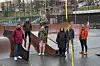 Smilene er brede blant representantene fra Rødt, Trolls og Sterling da Joakim Wang fyrer av konfettikanonen for å feire at skateparken endelig får de midlene de trenger.