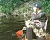 Fluffy sitter baugen på kajakken, og er helt avslappet på å være ombord i en liten flytende båtFoto: Privat