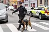 Politihund med fører på vei til stedet.Foto: Javad Parsa / NTB