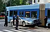 Kollisjonen skjedde i krysset Rostockgata og Dronning Eufemias gate. Også et trafikklys fikk hard medfart i kollisjonen.