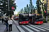 Ulykken skaper en lang kø med massevis av røde busser langs Dronning Eufemies gate.Foto: Christian Boger