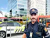 Politi ombord på trikken som kjørte på to personer i Dronning Eufemies gate i Bjørvika.Foto: Christian Boger