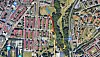 Gul markerer gangvei med lys. Rød er gangvei uten lys. Blå er akebakke og skilekområdet på Ola Narr.Kartutstnitt fra Google maps