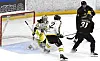 Grüner sløste lenge med sjansene før de fikk hull på byllen Her er det Tim Robin Johnsgård og Tobias Skuterud som ikke lykkes med å få pucken i mål.Foto: Christian Boger
