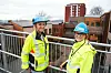 Laurense Rypdal i Oslobygg (t.h.) forklarer at landsbyen har fargekoder for gjenkjenning, og er designet som et åttetall slik at det ikke blir noen blindveier for beboerne.Foto: Petter Terning